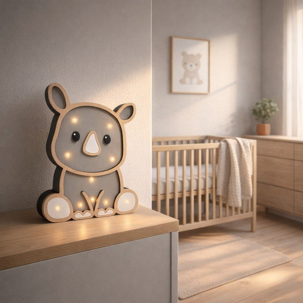 Bring warmth and reassurance to your little one’s nursery with our Rhino Wooden Night Light. Thoughtfully handcrafted, this charming giraffe adds a soft, comforting glow that helps create a peaceful bedtime atmosphere while blending beautifully into any nursery space.