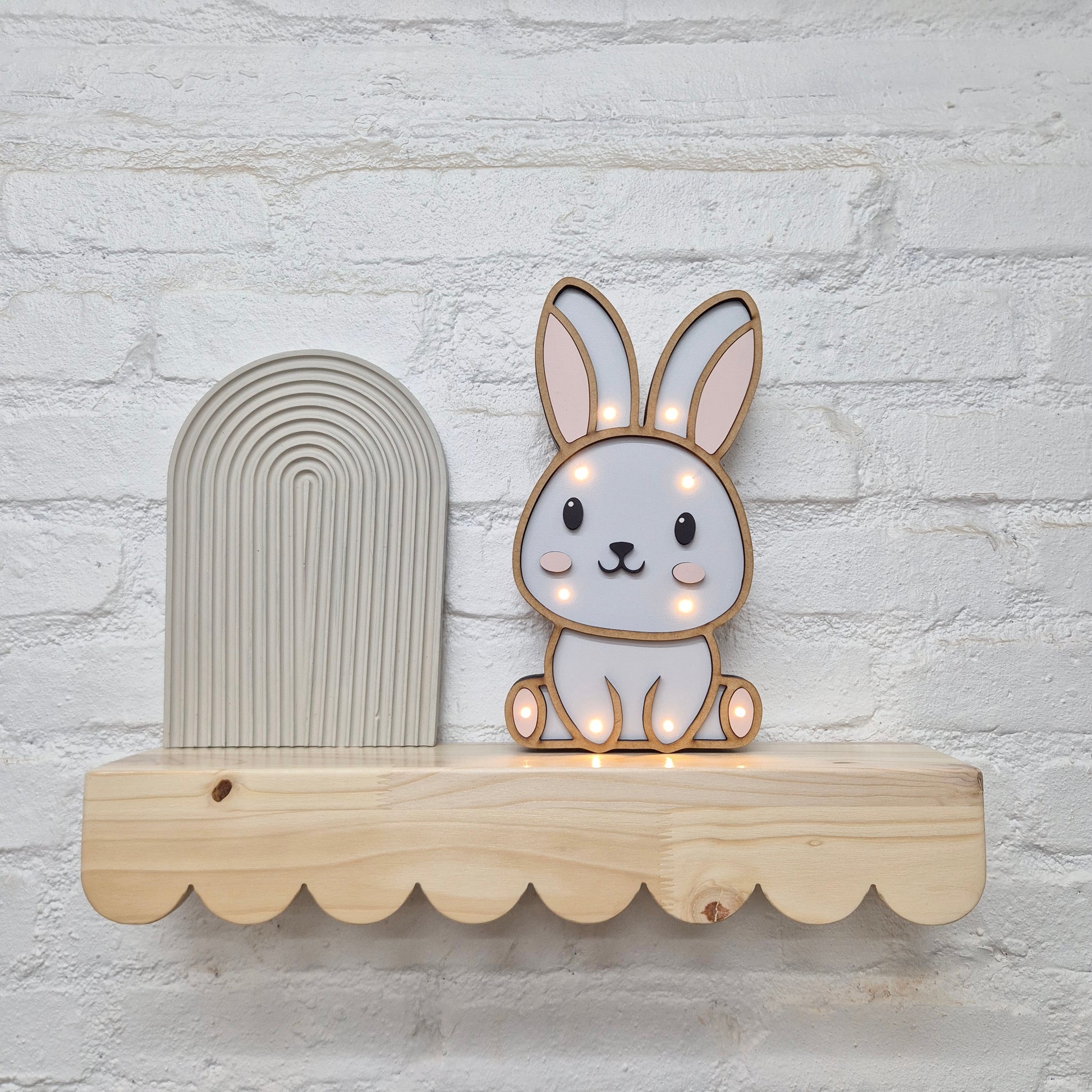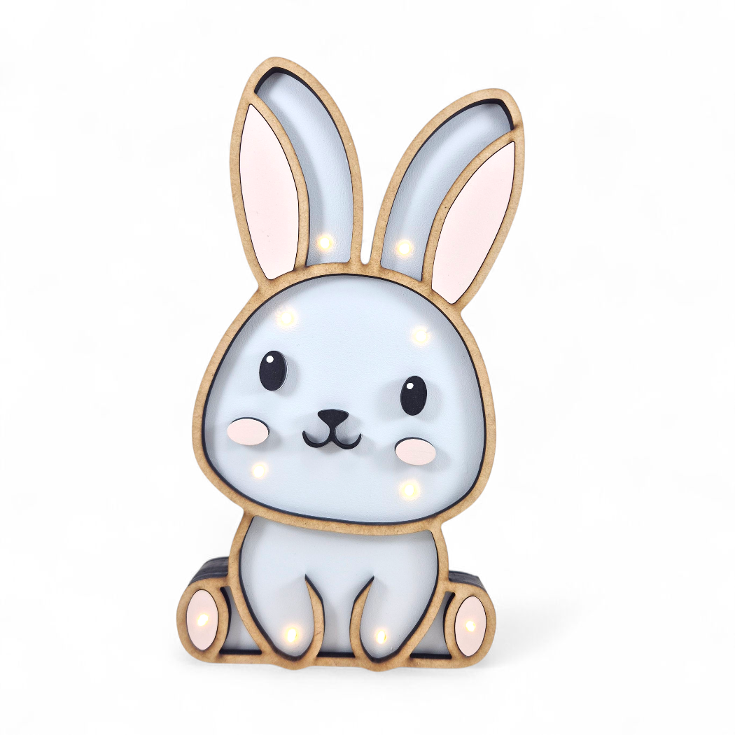 Create a cosy and comforting atmosphere with Nibbles the adorable wooden bunny night light. Perfect for soothing little ones to sleep, this handcrafted piece brings warmth and charm to any room.